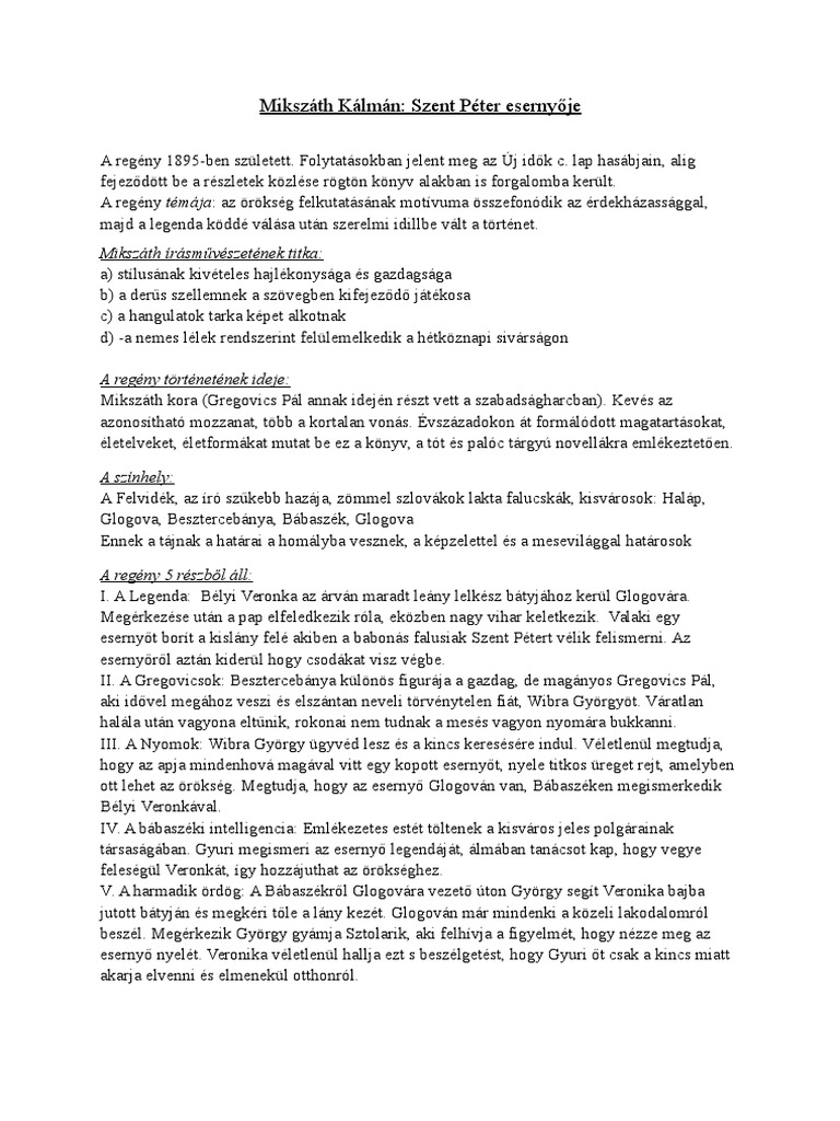 Mikszáth kálmán szent péter esernyője első rész olvasónapló bejegyzéshez 152 hozzászólás egy diák. Tartalom első rész a legenda viszik a kis veronkát glogova régen 00 05 29 az új pap glogován 00 11 44 az esernyő és szent péter 00 31 59 második rész a grego. Szerkezetileg a regény két szálon fut. Isten ő szent felsége mindenesetre jó bölcs és hatalmas.